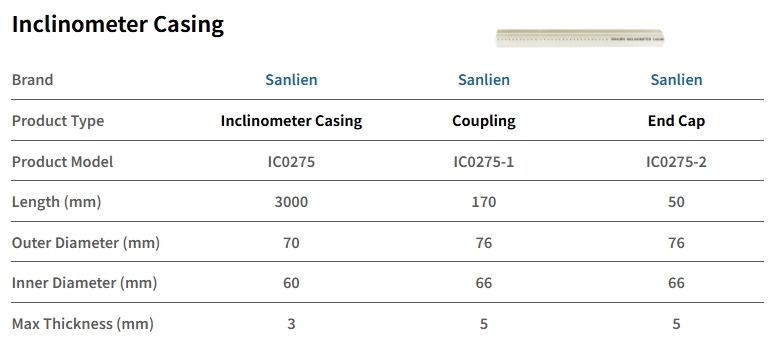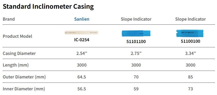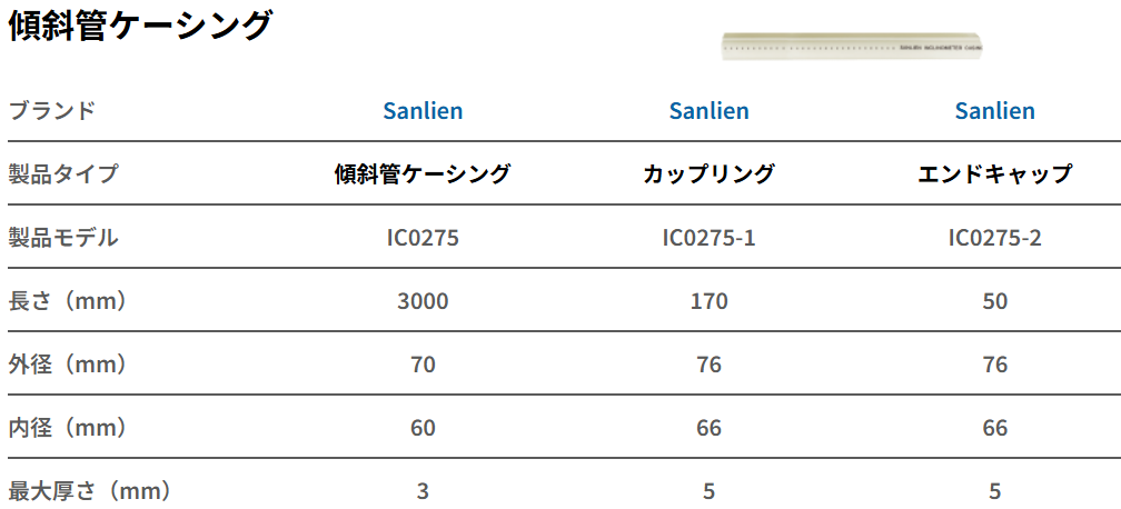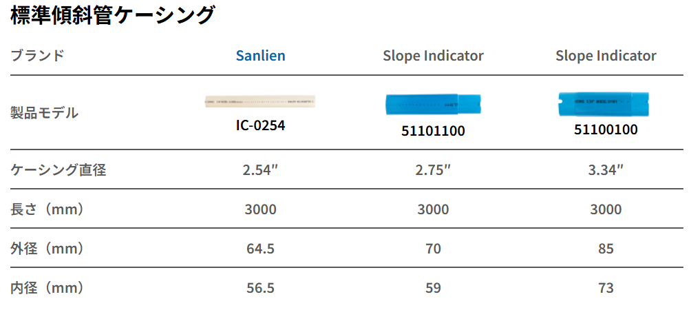 三聯が製造する傾斜管の溝は厳格に管理されており、傾斜計のガイドホイールと密着して組み合わさることで、測定データの精度と信頼性を確保します。傾斜管は用途に応じて複数のサイズを選択可能であり、低ねじれ率(<0.33°/3M)により方向誤差を回避できるため、深掘削工事や法面工事のモニタリングに最適な選択肢です。