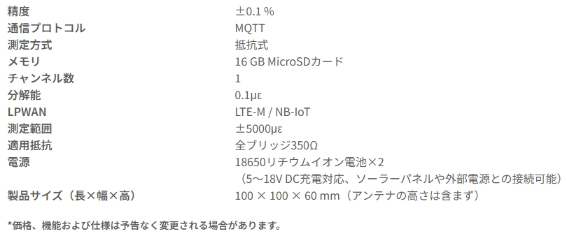 本装置は斜面安全対策、都市土木新設工事、河川・水利工事、橋梁工事における荷重、水位、応力、ひずみ、ひび割れ、地すべり変位など多様な監視に対応します。内蔵の16GB MicroSDカードにより100万件以上のデータ保存が可能で、長期監視に最適です。設定はSDカードを介してパソコンから簡単に行え、取得したデータをクラウドに自動アップロードできます。